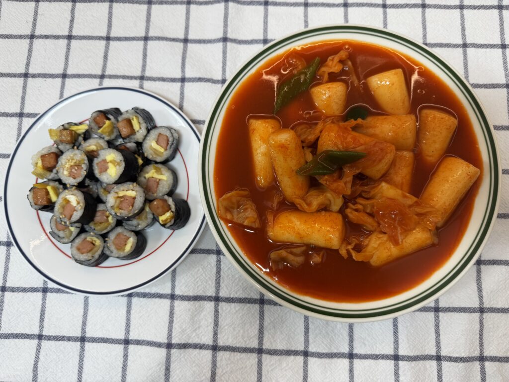 어른과 1호는 김밥에 떡볶이.