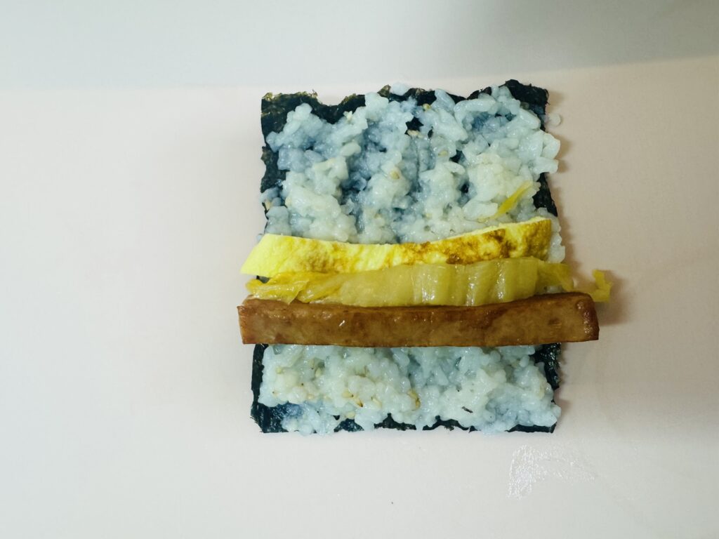 재료는 김, 스팸, 계란, (사진엔 없지만)묵은지.