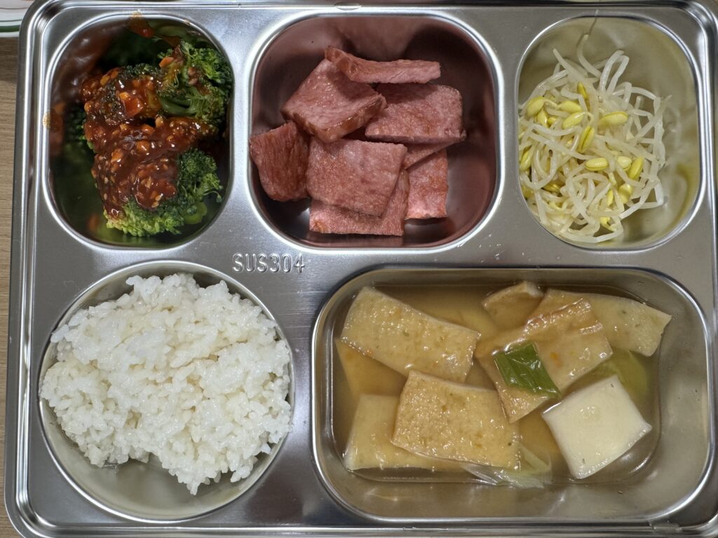 브로콜리, 햄구이, 콩나물무침, 어묵탕