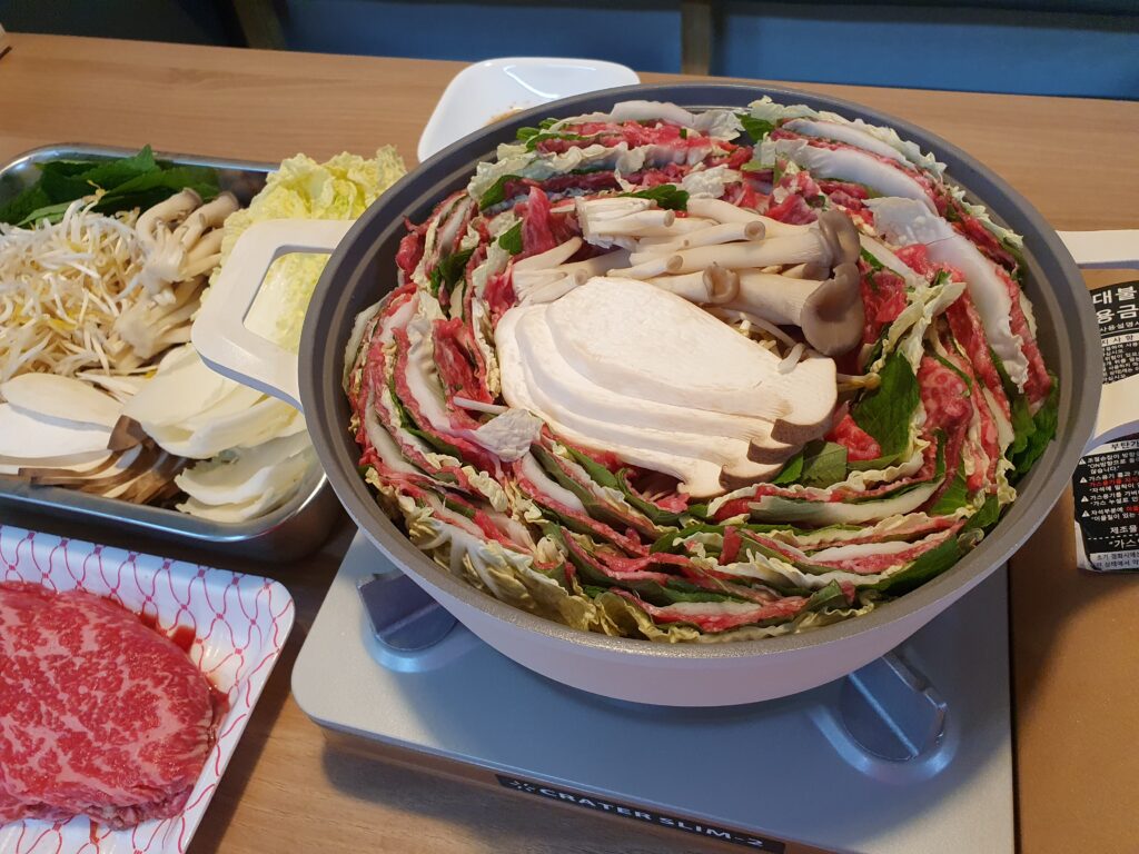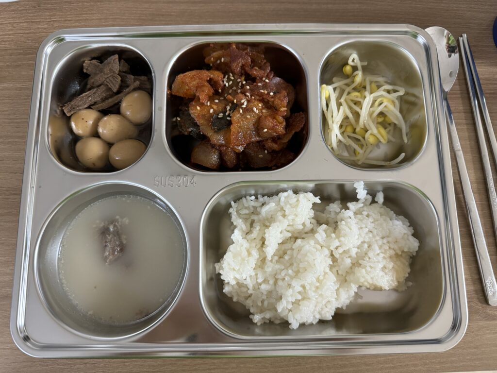 소고기장조림, 제육볶음, 콩나물무침, 곰탕