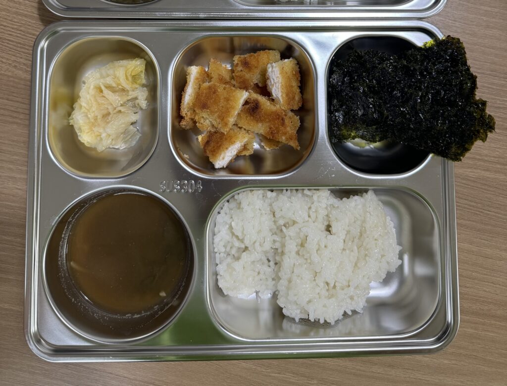 백김치, 돈까스, 김, 시금치된장국