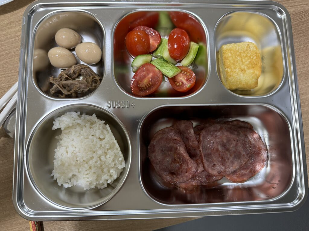 소고기장조림, 토마토오이샐러드, 두부부침, 오리고기