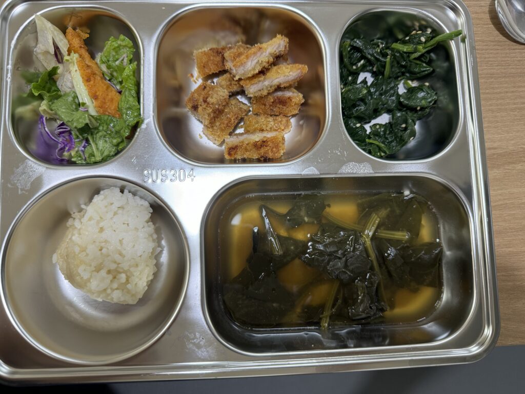 샐러드, 돈까스, 시금치무침, 시금치된장국